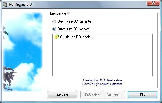 2) Dans la fenêtre qui s'ouvre cliquez sur Ouvrir une BD locale... ou sur le nom d'une base de donnée déjà utilisée, puis sur le bouton Fin